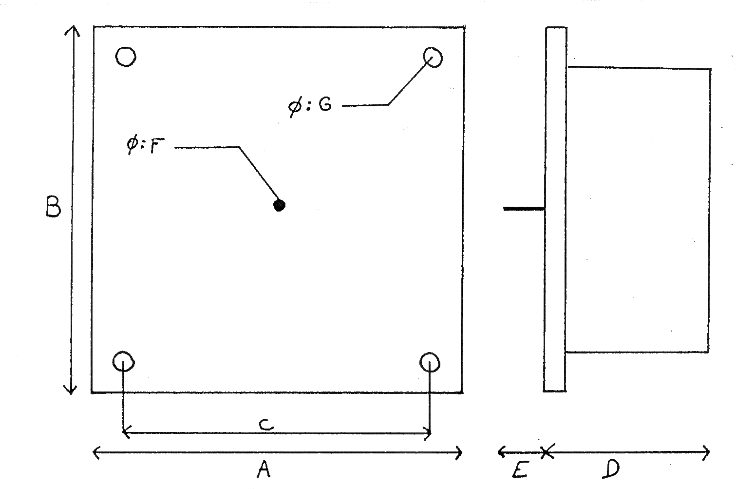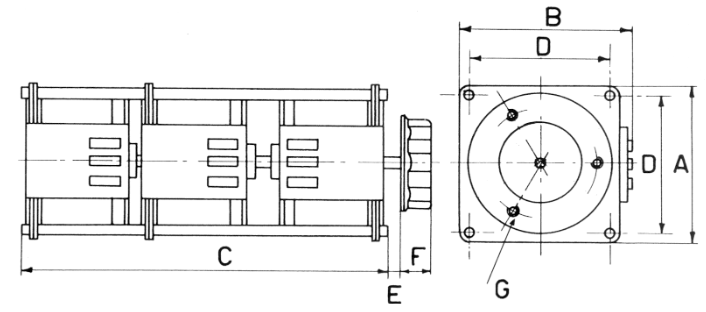 | Références | Poids en Kg | Aen mm | Ben mm | Cen mm | D øen mm | E øen mm | F øen mm | G øen mm |