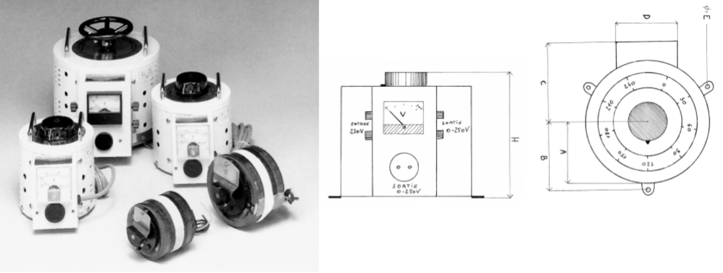Les autotransformateurs possèdent pour le raccordement, soit des cosses à visser, soit un cordon avec prise, soit une prise de sortie implantée sur le capot.
